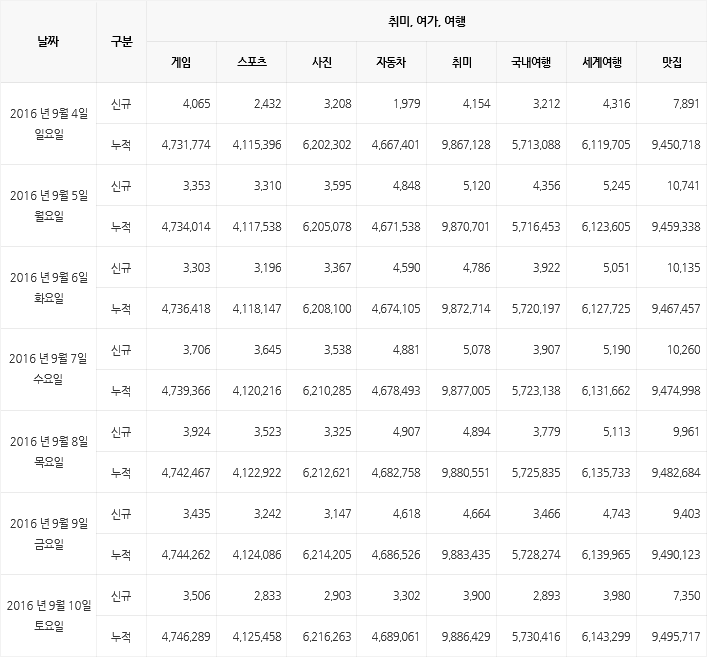 일상 주제만큼은 아니지만 '취미·여가·여행' 분야의 블로그 포스팅도 활발하게 이뤄지고 있습니다.